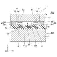 リードフレームおよびワイヤ等の端子を封止樹脂によって封止することで、端子が外気と接触することを抑制する半導体装置が提案されている。しかしながら、例えば銅等の金属材料によって端子が構成される場合、端子と封止樹脂との密着性を高めづらく、端子から封止樹脂が剥がれる虞があった。端子から封止樹脂が剥がれて、端子が外気と接触すると、端子が腐食等によって劣化するため、半導体装置の信頼性が低下する虞があった。