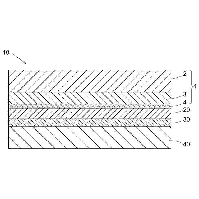 以下である。最表層(2)の表層側の90℃でのタック力が200gf以下である。長手方向のヤング率が1000MPa以上である。120℃、10分で加熱したときの熱収縮率が1%以下である。