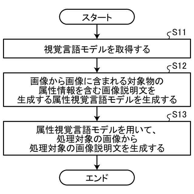 従来、画像(静止画像)から画像の内容を説明する文章である画像説明文(画像キャプションともいう。以下、「画像説明文」と記載する。)を生成する技術が知られている。例えば、画像から画像説明文を生成する機械学習モデル(以下、「画像キャプションモデル」と記載する場合がある。)に関する技術が知られている。例えば、このような画像キャプションモデルとして、視覚言語モデル(Visual Language Model; VLM)が知られている。視覚言語モデル1は、画像と、画像に対応する画像説明文との組を含む学習データに基づいてあらかじめ学習された機械学習モデルである。具体的には、視覚言語モデル1は、学習データに含まれる画像が入力された場合、画像に対応する画像説明文を出力するように学習された機械学習モデルである。