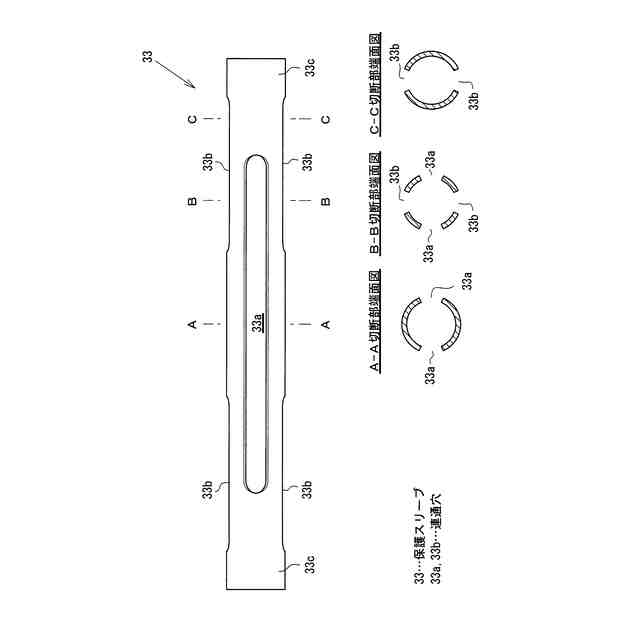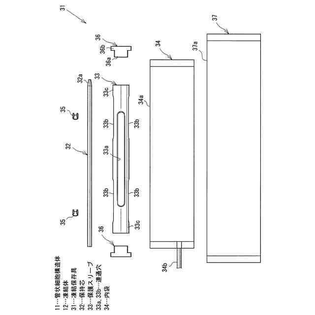 管状細胞構造体よりも大径の筒状をなし内外に連通する連通穴を側面に有して保持芯を軸心部に収納保持する保護スリーブと、