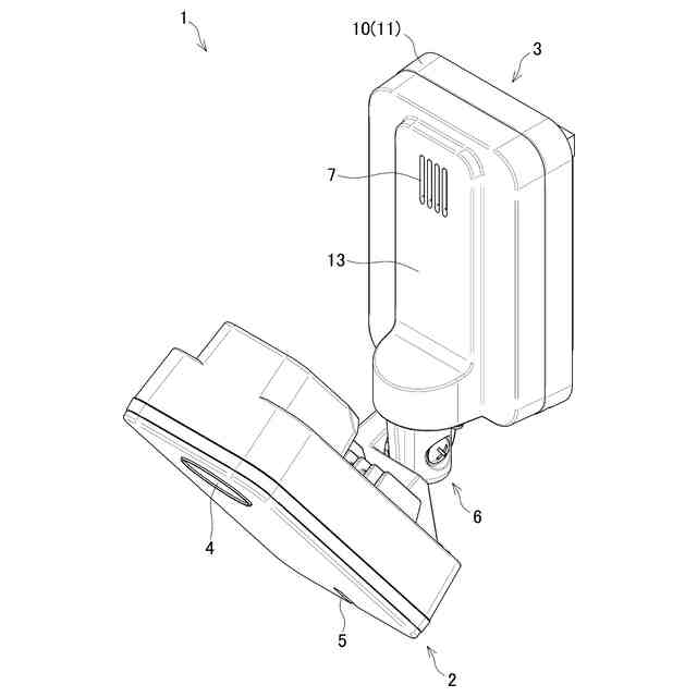 図1は、監視カメラ1の外観を示した斜視説明図である。図2は、通信装置3を前側から示した説明図である。図3は、化粧カバー13が取り外された本体ケース10を前方から示した斜視説明図である。図4は、化粧カバー13が取り外された本体ケース10を後方から示した斜視説明図である。図5は、図3の状態からカバー部材30を開放姿勢へと回動操作した状態を示した斜視説明図である。図6は、カバー部材30を示した斜視説明図であり、(a)は前側から、(b)は後側から夫々示している。図7は、パッキン40を示した説明図である。図8は、図2中のA-A線断面のうち要部を拡大して示した説明図である。図9は、図2中のB-B線断面のうち要部を拡大して示した説明図である。