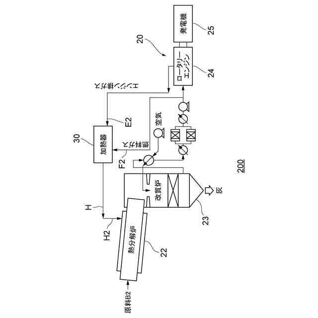 【解決手段】バイオマス発電システム100は、第1の発電設備10と、第2の発電設備20と、第1の発電設備10及び第2の発電設備20を接続する加熱器30と、を備えている。加熱器30は、第2の改質炉23から供給された燃料ガスF2を燃焼させて第1の熱分解炉12に燃焼熱を供給する。