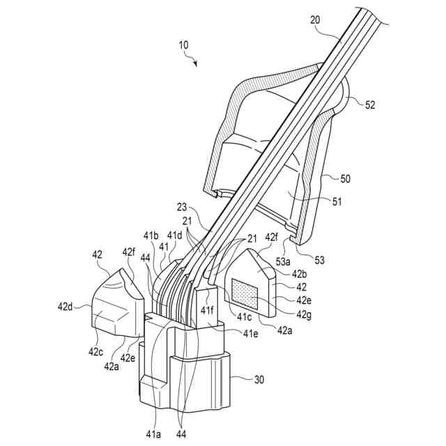 以下、一実施形態に係る接続構造について、図1乃至図3を参照して説明する。図1及び図2は一実施形態に係る接続構造の斜視図及び分解斜視図である。図2においては説明のためアウターカバー50を一部切欠して断面形状を示している。図3は組付手順を示す説明図である。図中X、Y、Zは互いに直交する3方向をそれぞれ示す。なお、各図において説明のため、適宜構成を拡大、縮小または省略して示している。