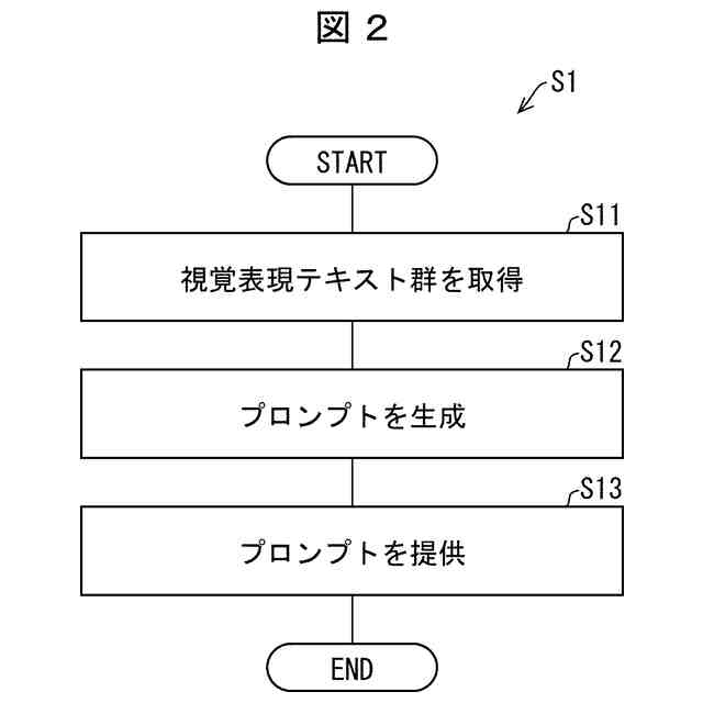 前記視覚表現テキスト群を参照してプロンプトを生成するプロンプト生成手段と、