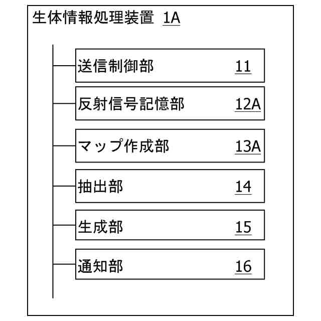 繰り返し送信された前記第1の信号に対する前記反射信号の夫々から前記生体情報及び前記生体情報が検出された位置を算出し、前記反射信号を受信した時刻、前記生体情報及び前記位置の対応関係を前記記憶部に記憶させる記憶処理と、