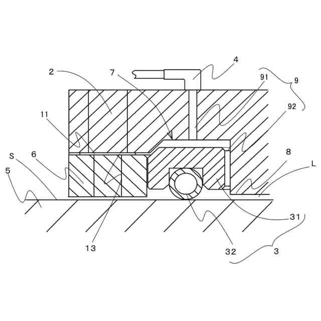 前記基体と接触する接触部と、前記シールリング体を収容する収容部と、前記基体との間に流体層を形成する流体層形成部と、前記流体供給部から前記流体層形成部へ流体を供給する流体供給路と、前記流体を排出する排出路とを備え、