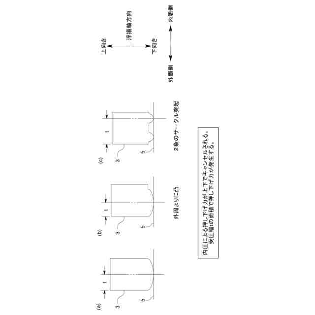 そこで浮上容器のシール膜の端部を床面との間で摺動可能にした機構がいろいろと考案されている(特許文献2、3、4、および非特許文献5、6)が、膜状のものが浮上高さ分の隙間をシールしようとすると膜は浮上板に固定点を必要とし、膜は必然的に浮上高さの何倍かの長さを必要として、受圧面積が大きくなり押し下げ力が大きいため、膜が接触すると大きな摺動抵抗が発生して振動を伝達する。さらに膜の固定部品の厚みも必要となって気柱高さを極小化できない。摺動抵抗は水平方向の振動遮断性能に影響するために膜の接触面を離間させるように流体を漏らす構造がとられている(非特許文献5)。