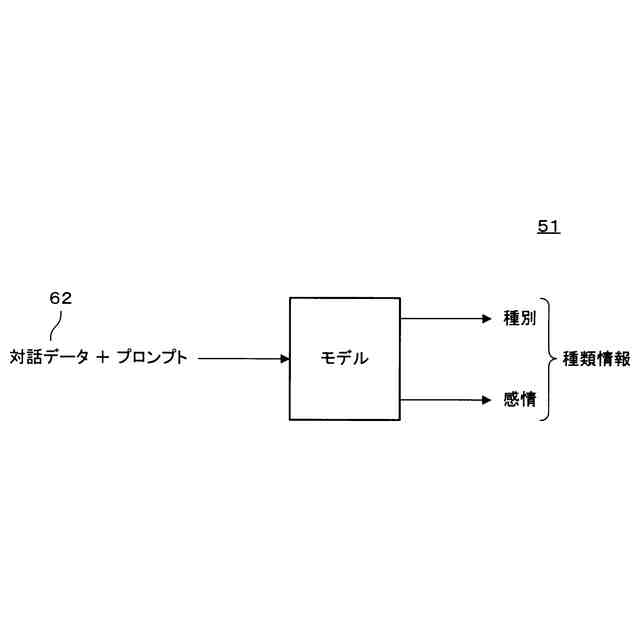 対話データの入力を受け付けて、対話に関する種類情報を出力するモデルに、前記対話データを入力して、種類情報を取得し、