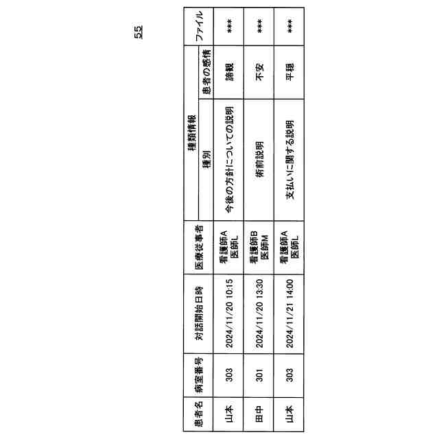 病院等の医療機関においては、患者、医療従事者、患者の家族、および、医療機関の従業員である非医療従事者等の様々な立場の人同士の間でのコミュニュケーションが、当該病院等の内部で行なわれる場合がある。しかしながら、特許文献1の情報処理方法では、コミュニュケーションの内容を記録できない。