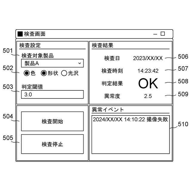 検査対象物を撮像して得られる画像データを基に検査を行う際に、所望の枚数よりも撮像画像が多い又は少ない状況で検査を行ってしまうと検査精度が低下してしまうことがある。例えば、撮影画像の枚数が少ない場合、フォトメトリックステレオ法を行うのに十分な撮像画像が得られないため、検査対象物の表面形状を高精度に推定することが困難になる。また、撮影画像の枚数が多い場合、撮像と光源の点灯とがうまく同期できていないために撮影画像が暗くなってしまい、欠陥の検出を高精度に行うことができなくなってしまう。そこで本実施形態においては、撮像により得られた撮像画像が所望の枚数でない場合にユーザに対して警告を出力する。これにより、所望の枚数よりも撮像画像が多い又は少ない状況で検査を行うことで検査精度が低下してしまうことを抑制することができる。