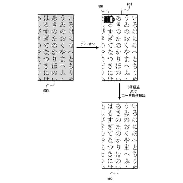 ライトをオンにしたときの画面表示の例を説明する図である。