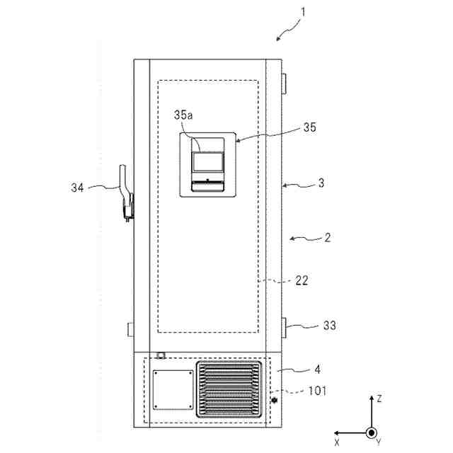 冷凍装置では、冷却室内の温度上昇が貯蔵物への影響につながるため、冷却室内の温度上昇への対策が検討されている。