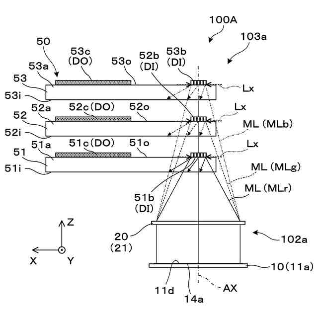 図2は、第1虚像表示装置100Aの第1表示駆動部102aと第1導光光学系103aとを具体的に説明する概念的な側面図である。図3は、第1表示駆動部102aと第1導光光学系103aとを具体的に説明する概念的な平面図である。