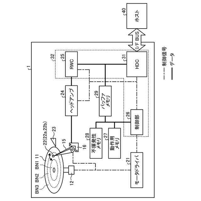 ディスク装置1は、ヘッド22でディスク11に情報を記録する装置であり、例えば、磁気ディスク装置であってもよいし、光ディスク装置であってもよい。具体的には、ディスク装置1は、ディスク11、スピンドルモータ12、モータドライバ21、ヘッド22、アクチュエータアーム15、ボイスコイルモータ(VCM)16、ランプ23、ヘッドアンプ24、リードライトチャネル(RWC)25、ハードディスクコントローラ(HDC)31、バッファメモリ29、及び制御部26を備える。