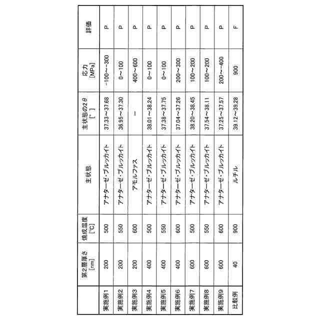 前記第2層をX線結晶構造解析で測定したとき、測定データにおいて、2θが20°以上50°以下であり、かつ、γが-95°以上-85°以下である範囲にピークを示さない、
