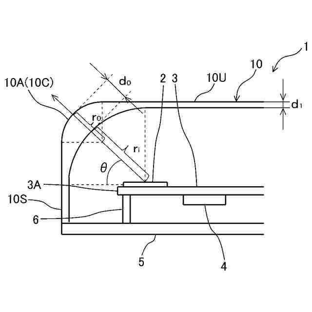 また、樹脂成形品であるレドームに厚みが急激に変化する箇所が存在しているため、樹脂成形の際に当該箇所付近に反りが発生し成形不良となる可能性がある。さらに、アンテナ利得を最大化するレドームの厚みは透過する電波の波長の1/2ということが知られているが、高周波帯域でのアンテナ利得を最大化するためのレドームの厚みは、成形不良となる恐れのある程に大きくなることが考えられる。