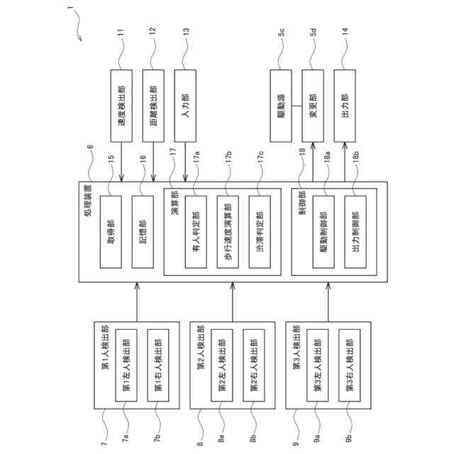 前記第1人検出部及び前記第2人検出部の検出に基づいて、人の歩行速度を演算し、