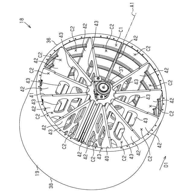 前記接続部分は、前記軸部分から前記周面部分に向かって延びる複数のリブを有し、