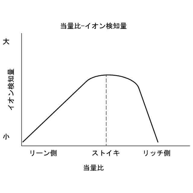 図4は、図1の燃焼装置での、燃料の当量比とイオン検知量の大きさとの関係を示すグラフである。