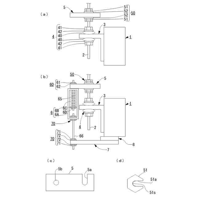 尚、ナット51として、ボルトの中間の横から挿入して螺着できるように構成されたナットを複数使用した例えばダブルナットを用いるようにしてもよい。