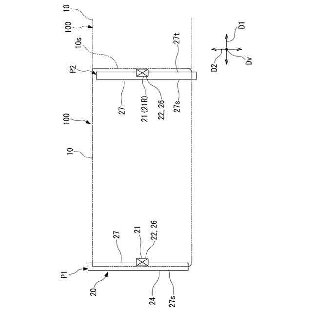 前記支持構造体の各々の前記下部延在部における前記幅方向の内側の縁部は、前記接続部における前記幅方向の内側を向く内向面に対し、前記幅方向の外側に偏って配置されている