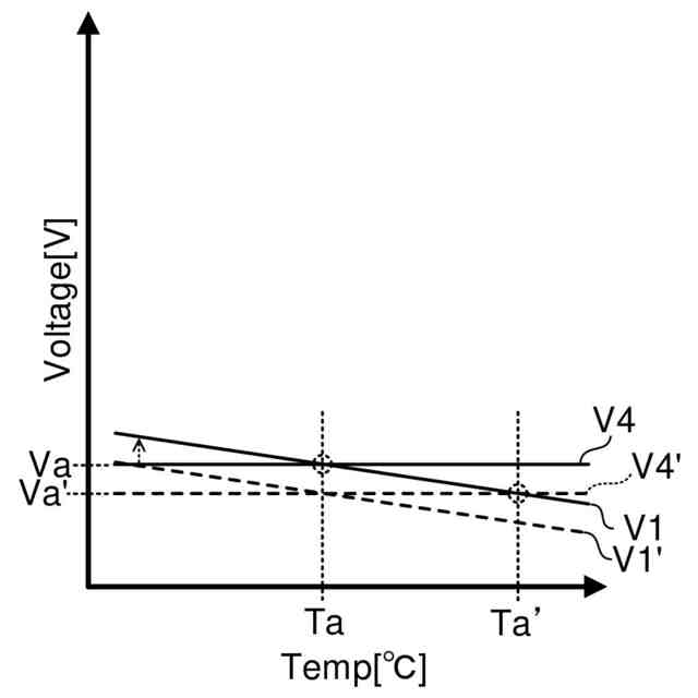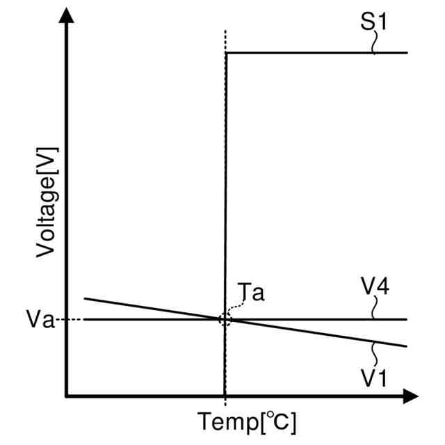 図4は、ダイオードD1の温度に応じた補償電圧V1と参照電圧V4との関係を示すグラフである。
