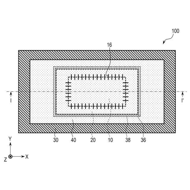 第1実施形態による電子部品における基板の構成例を示す平面模式図である。