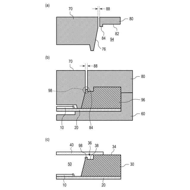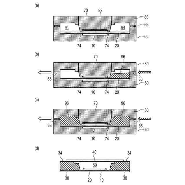 また、本明細書の他の一開示によれば、半導体素子が設けられた基板の上に、前記半導体素子の周囲を囲むように枠体を形成する工程と、前記半導体素子が設けられた空間を塞ぐように前記枠体に蓋体を固定する工程と、を有する電子部品の製造方法であって、前記枠体を形成する工程では、前記基板を設置する第1金型と、前記枠体の内側面を成形するための第2金型と、前記枠体の前記蓋体と対向する面を成形するための第3金型と、を用いて射出成形により前記枠体を形成し、前記第2金型と前記第3金型とは、分離しており、前記第1金型との間の距離を互いに独立して変えられるように構成されており、前記第3金型は、前記蓋体が接合される面を成形するための枠状の第1領域と、前記第1領域よりも内側に位置し、前記第1領域よりも前記第1金型の側に突出する凸部を有する枠状の第2領域と、を有する電子部品の製造方法が提供される。