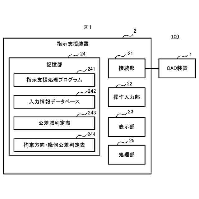 本開示は、上述の問題を解決するためになされたものであり、設計者の習熟度に関わらず、図面に適切な幾何公差を効率的に指示することができる指示支援装置、方法、プログラム提供することを目的とする。