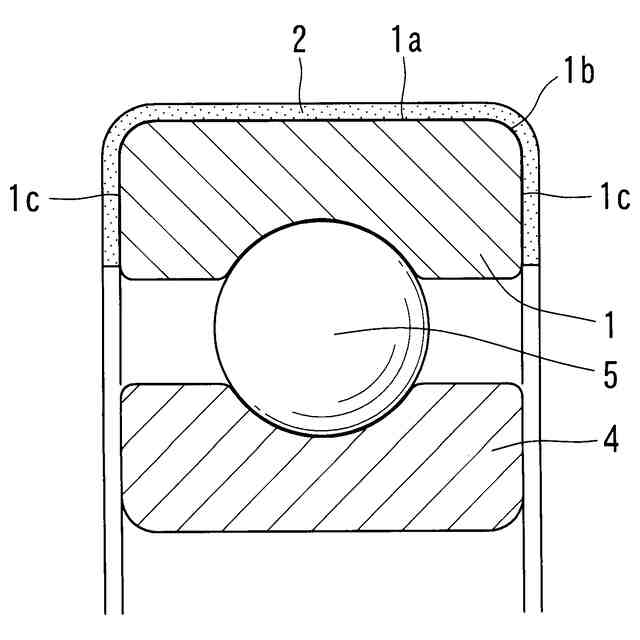 このような樹脂組成物を軌道輪の表面に被覆するには、インサート成形法により、外輪の外周面や内輪の内周面等を含む表面を樹脂被膜で包むように射出成形する方法が製造効率の面からも好ましい。