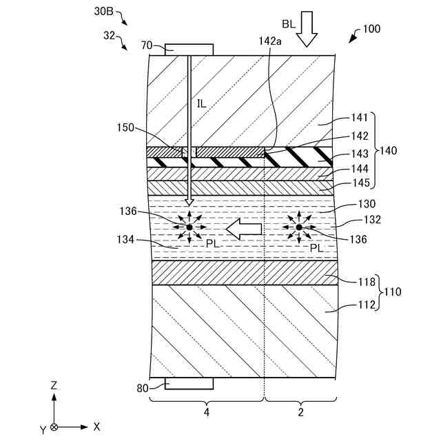前記光照射部によって前記液晶層の前記部分に前記第1波長域の光が照射された場合に、前記液晶層の前記部分から出射される前記第1波長域よりも長波長域の光を検出する。
