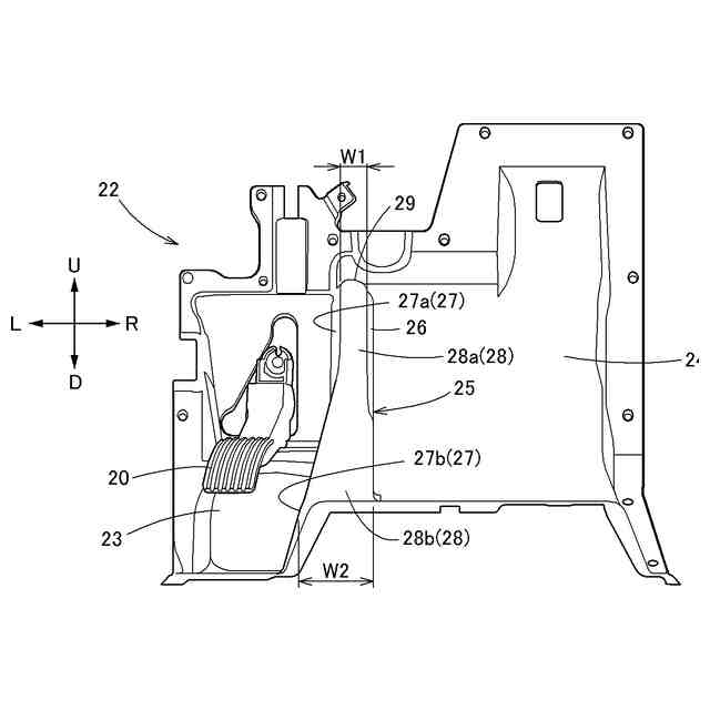 これにより、助手席に着座する助手者が操作ペダルを誤って踏み操作しないように、操作ペダルの領域と助手席の前方下方の領域とを仕切る仕切り部を設けることが提案されている。