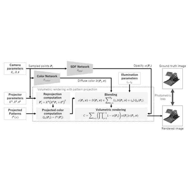 例えば、海底や生体内といった人間がアクセスし難い環境は、低照度や低コントラスト、低テクスチャといった極端な環境である場合が多い。上述したようなNeRFを用いた三次元画像の再構成は、その原理が従来のパッシブステレオ法と同等であるため、低照度や低コントラスト、低テクスチャといった極端な環境下で三次元画像の再構成を行った場合、三次元画像の再構成自体が不可能であったり、三次元画像の再構成の精度が劣るなどの課題がある。