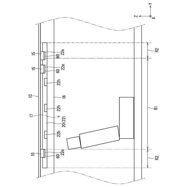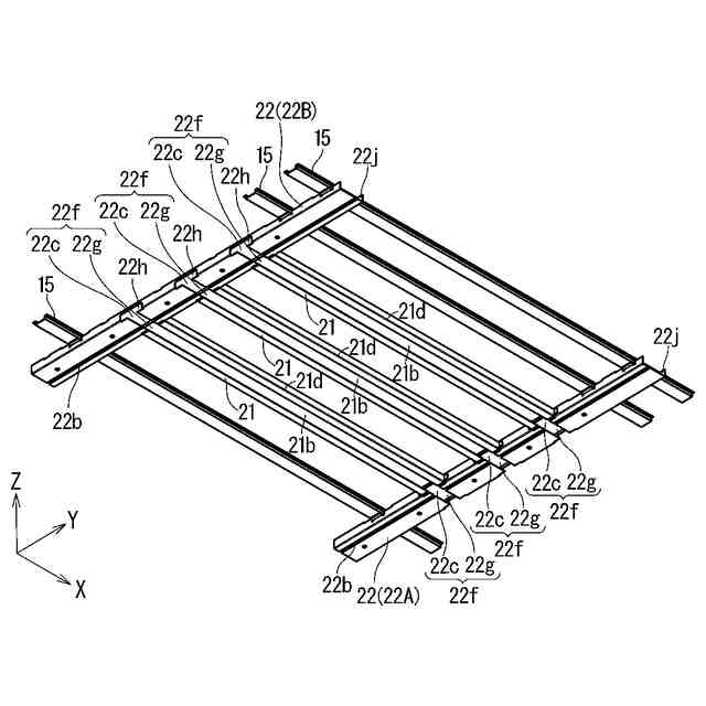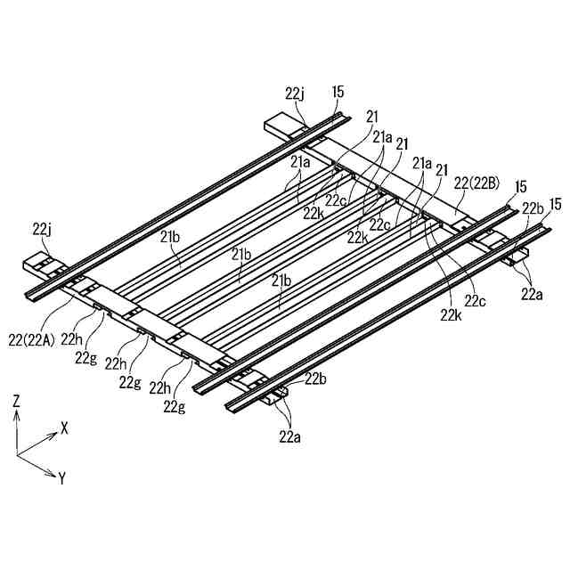 図13はスライド部が車載機器の支持装置で移送される様子を下方から示す説明図である。