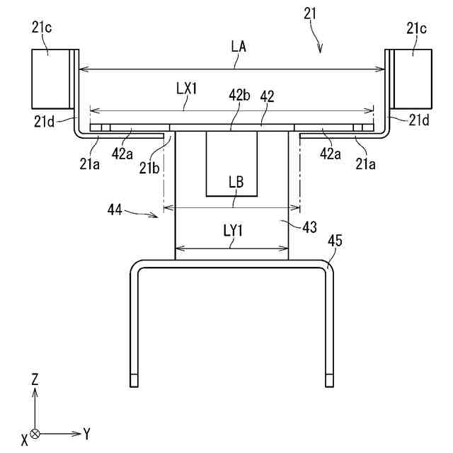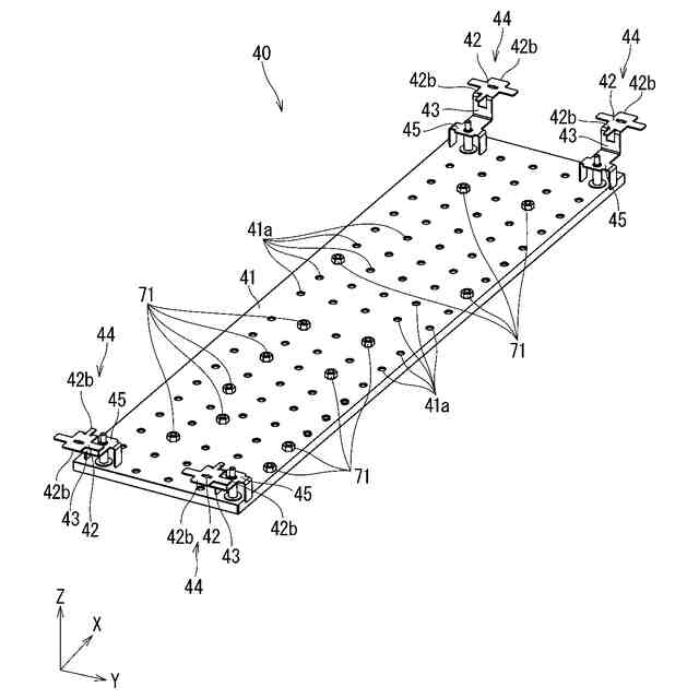 図4は本開示の車載機器の支持装置を下方から示す概略斜視図である。