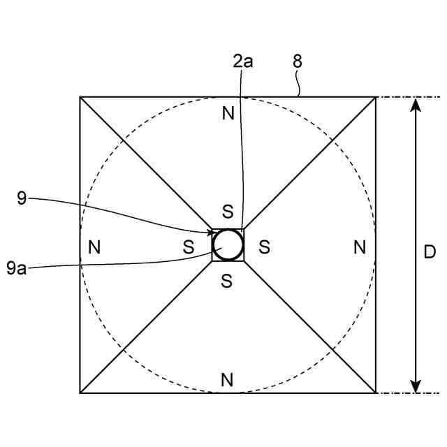 前記第1の磁石体は、前記順方向に垂直な方向に、かつ前記貫通孔側がN極となるように着磁されており、