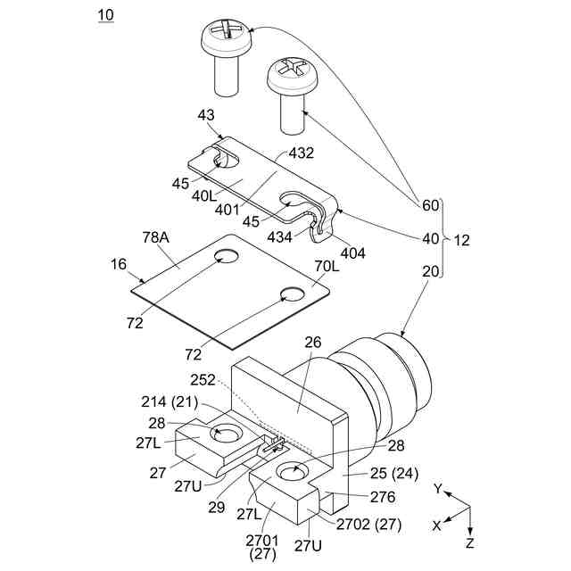 前記ネジは、前記接続状態において、前記固定孔及び前記通過孔を通過して、前記突出部の前記ネジ穴に夫々ねじ込まれており、それによって、前記ネジは、前記被固定部材を前記基板の前記グランド層に押し付けつつ、前記突出部に夫々固定されている