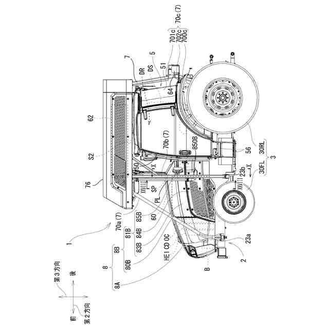 図23は、同実施形態に係る作業車両のフレームと車体とを分解するとともに、第2ボンネットを構成するパーツ(部材)を分解した状態の斜視図である。