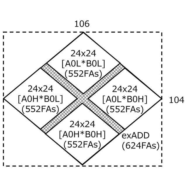 さらに、浮動小数点演算では、アプリケーションによって、FP(Floating Point)64,FP32,FP16などの複数精度(ビット幅)の数値が使い分けられている。FP32乗算は24×24ビット整数乗算を必要とし、FP64乗算は53×53ビット整数乗算を必要とする。