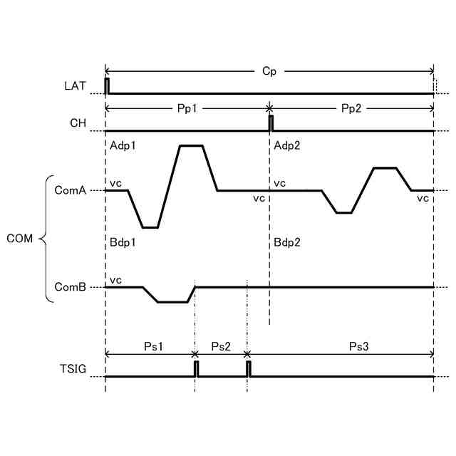 駆動電圧信号COM、ラッチ信号LAT、チェンジ信号CH、及び検査タイミング信号TSIGの信号波形の一例を示す図である。