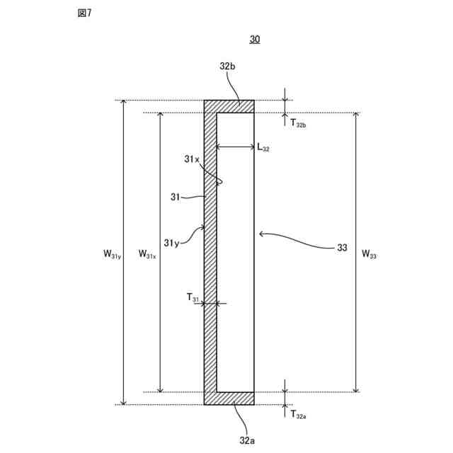 図1~8に示されるように、一実施形態に係る電池100は、電極積層体10と集電部20と端子30とを有する。前記電極積層体10は、前記集電部20を介して、前記端子30に電気的に接続される。前記端子30は、基部31と突出部32と開口33とを有する。前記突出部32は、前記基部31から前記電極積層体10側に突出する。前記開口33の形状は、前記突出部32によって画定される。前記集電部20は、前記開口33に挿入されて、前記端子30に接続される。前記突出部32の一部分は、前記突出部32の他の部分よりも厚い。