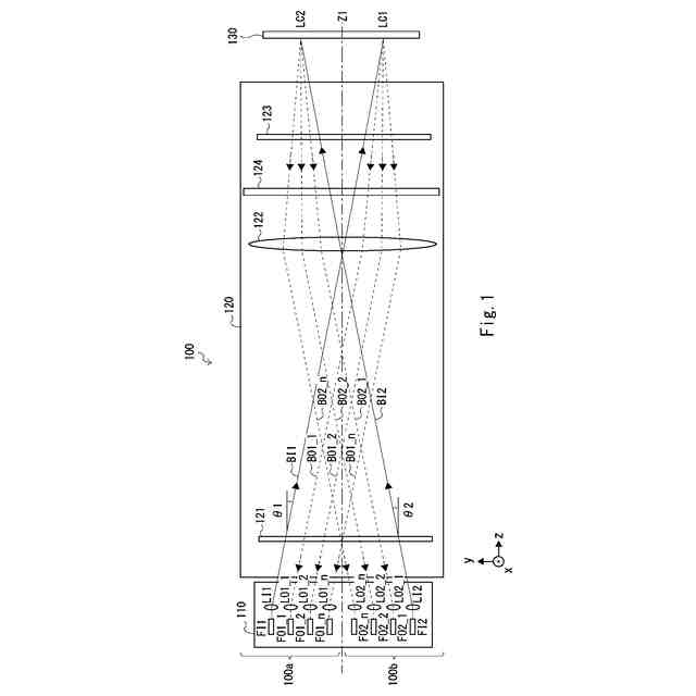 図1は、本開示に係る波長選択スイッチ(WSS;Wavelength Selective Switch)アレイ100の構成例を示す図である。なお、図1は、WSSアレイ100をx軸方向から見た図である。