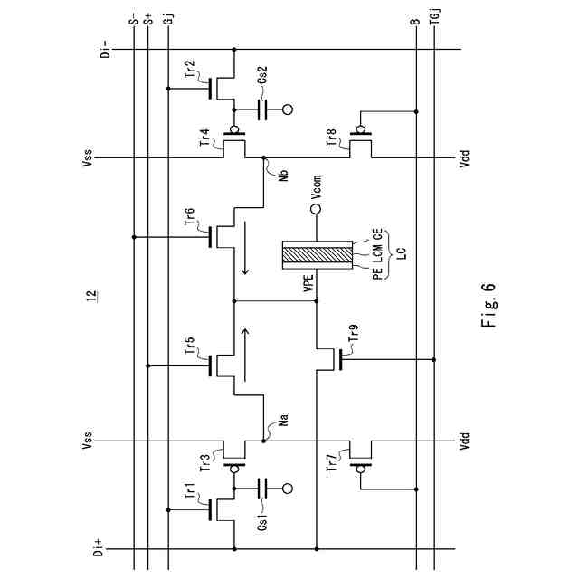 図4に示す液晶デバイスに設けられた画素の具体的な構成例を示す図である。