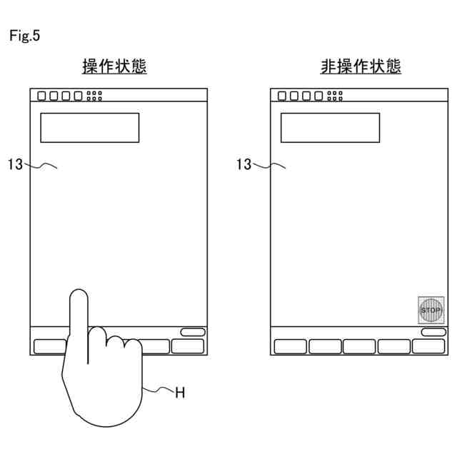 操作状態および非操作状態の画面表示例を模式的に示す図