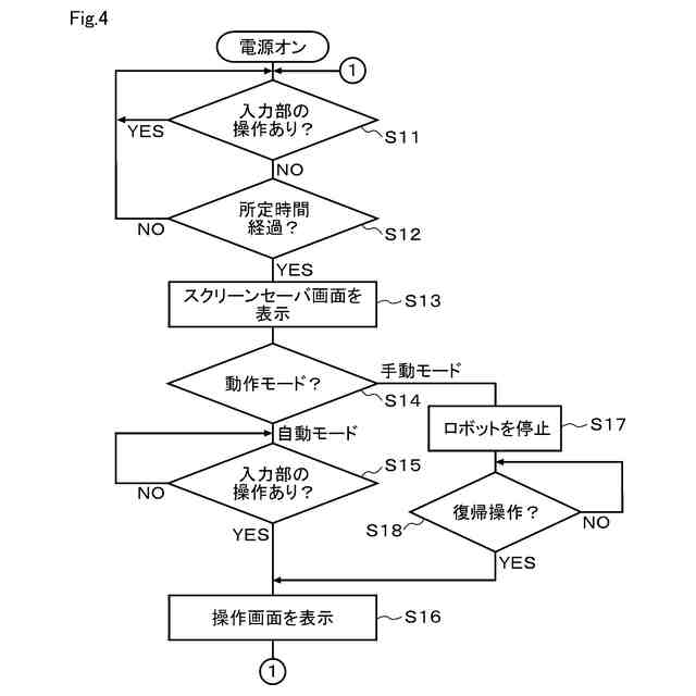 前記停止処理は、前記手動モードが設定された状態で前記スクリーンセーバが起動された場合に前記停止ボタンが操作されたとみなして前記ロボットを停止させる処理を含む、