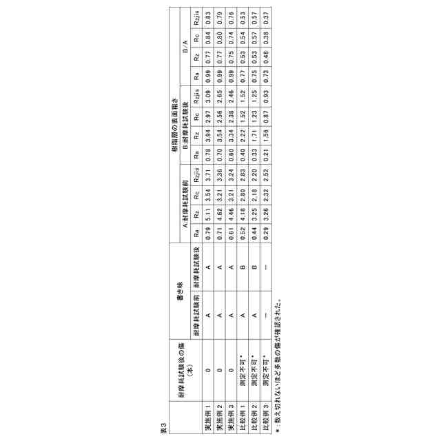 B4は、前記耐摩耗試験後の前記凹凸面の粗さ曲線要素の10点平均粗さRzjisである。)
