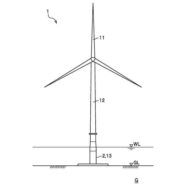 水上風力発電施設の基礎として、水底に設けられた1本の杭により風車塔を支持するモノパイル式基礎がある。モノパイル式基礎では、既成杭を水底に打ち込むことにより設ける打設杭や、水底に形成された掘削孔に既成杭を埋設する埋込杭等を使用する。