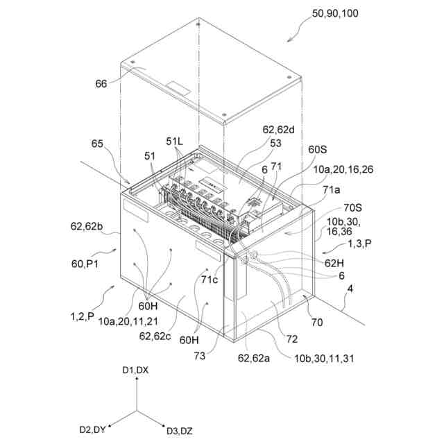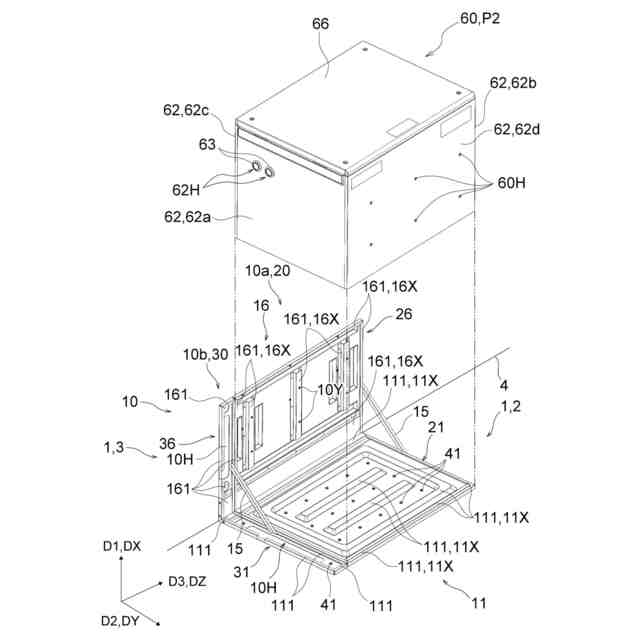 図3は、図1の蓄電設備について、筐体を第2位置にて設置する場合の筐体及び支持部材を主に示す斜視図である。