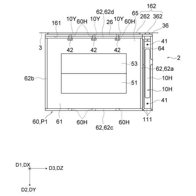 図2は、図1の蓄電設備について、筐体を第1位置にて設置する場合の筐体本体及び支持部材を主に示す斜視図である。