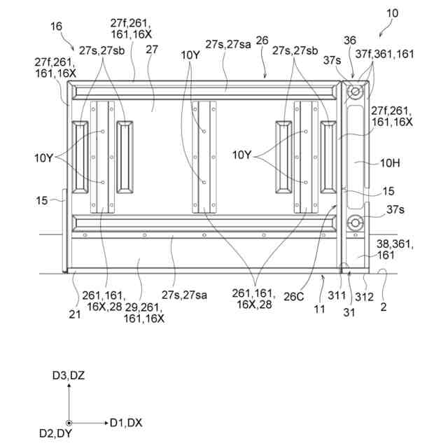 [2] 前記底板部は、第1面及び前記第1面よりも下方に位置する第2面を含み、前記第1面において前記蓄電素子ユニットに接続し、前記第2面において前記床部に接続する、[1]の支持部材。